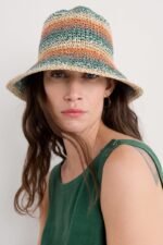 A straw effect woven paper sun hat with a short brim and elegant, retro feel. Perfect for popping into your suitcase for summer getaways, or in your beach bag for trips to the sea.