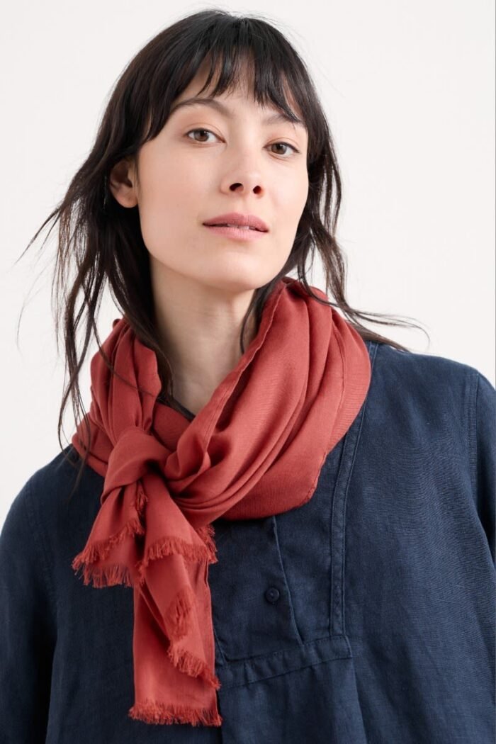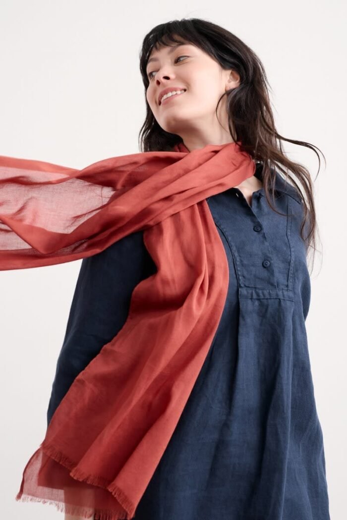 Add an accent colour to your outfit with our Vitality Scarf. It’s made from a woven organic cotton blend that’s comfortable to wear and always drapes beautifully. The classic long rectangle shape creates plenty of styling options, while the fringed edges add a subtle touch of detail.