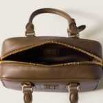 This Arcadie leather bag expresses a notion of fashion as a means of translating a reaction to current reality into material form. The light padding gives the bag a voluminous look and a cosmopolitan style. The lettering logo, which echoes the finishes of the metal hardware, crosses the boundaries between function and decoration and helps to define the distinctive and iconic aesthetic of the top-handle bag.
