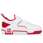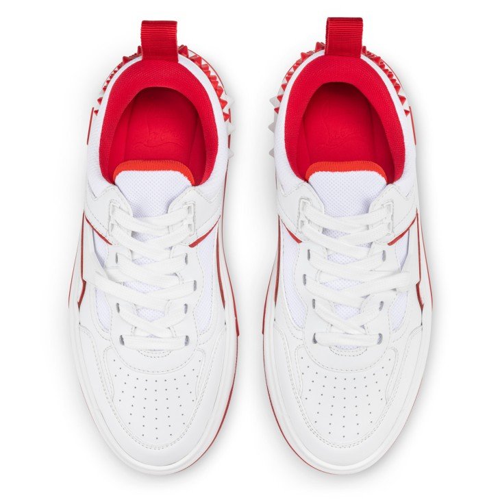 Showcasing an array of Maison Christian Louboutin signature details, the Astroloubi for women is inspired by the basketball sneakers of the 90s. This is a sophisticated style combining white and Loubi red calf leather. A lightweight, sporty design, this model also has a heel tab making it easy to slip on. This on-trend model in playful, retro colors features spikes at the back and a CL varsity monogram on the side.
