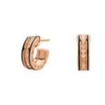 The B.zero1 Rock collection draws inspiration from the world-famous amphitheater, the Colosseum, and reflects Bvlgari’s creative vision and uninhibited style. The unique spiral design is reinterpreted with gold studs, challenging the essence of jewelry aesthetics and highlighting the freedom and forward-looking spirit of Bvlgari’s classic design. B.zero1 Rock series 18K rose gold earrings inlaid with black ceramic.
