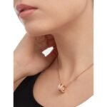 Inspired by the world-famous amphitheater, the Colosseum, the B.zero1 necklace is a true expression of Bvlgari’s creative vision, challenging the very essence of jewelry design. Its unique, pure spiral shape symbolizes the harmony of past, present and future – reflected in the splendor of the Eternal City – and the pioneering spirit of the collection. B.zero1 pendant with necklace, 18K rose gold, with pavé diamonds around the edges. Length 14.96-17.70 inches (38-45 cm).