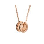 The B.zero1 Rock collection draws inspiration from the world-famous amphitheater, the Colosseum, and embodies the creative vision and uninhibited style of Bvlgari. The unique spiral design is reinterpreted with gold studs, challenging the essence of jewelry aesthetics and highlighting the freedom and forward-looking spirit of Bvlgari’s classic design. B.zero1 Rock series 18K rose gold necklace inlaid with black ceramic.