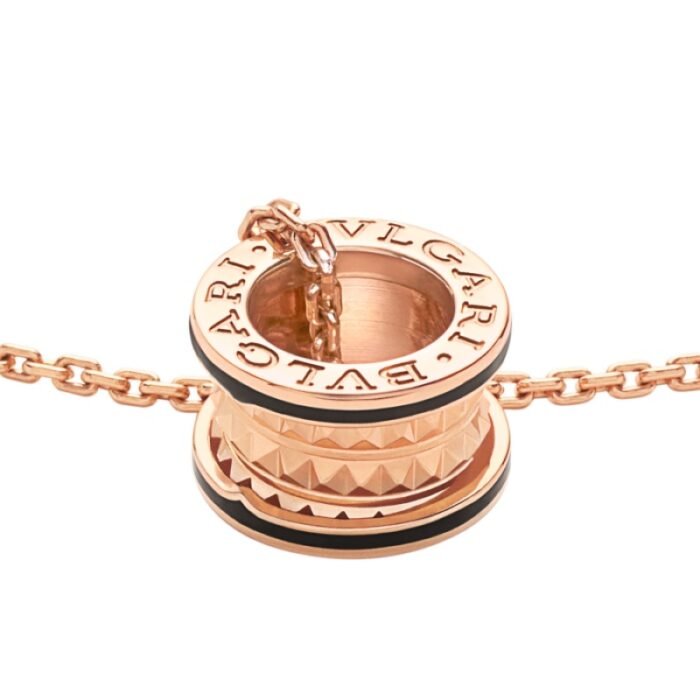The B.zero1 Rock collection draws inspiration from the world-famous amphitheater, the Colosseum, and embodies the creative vision and uninhibited style of Bvlgari. The unique spiral design is reinterpreted with gold studs, challenging the essence of jewelry aesthetics and highlighting the freedom and forward-looking spirit of Bvlgari’s classic design. B.zero1 Rock series 18K rose gold necklace inlaid with black ceramic.