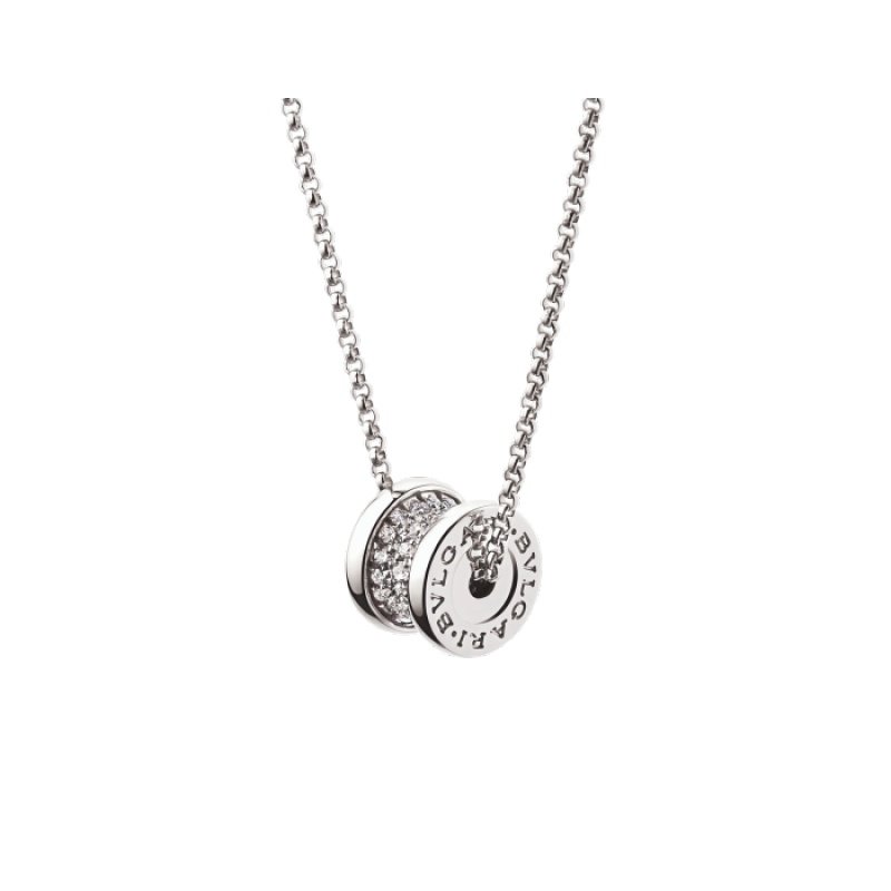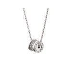 Inspired by the world-famous amphitheater, the Colosseum, the B.zero1 necklace is a true expression of Bvlgari’s creative vision, challenging the very essence of jewellery design. Its unique, pure spiral shape symbolises the harmony of past, present and future – reflected in the magnificence of the Eternal City – and the pioneering spirit of the collection. B.zero1 necklace in 18K white gold with pavé diamonds.