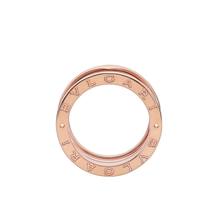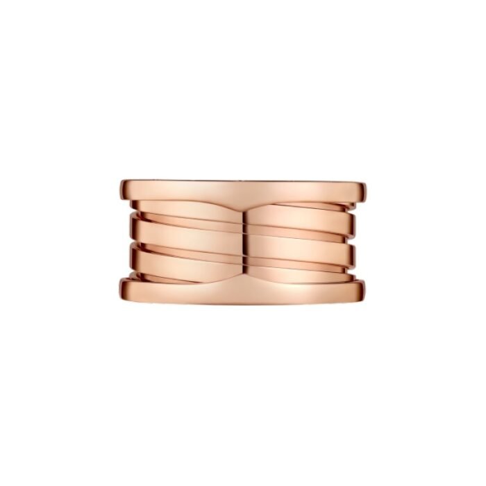 Inspired by the world-famous amphitheater, the Colosseum, the B.zero1 ring is a true expression of Bvlgari??s creative vision, challenging the very essence of jewellery design. Its unique, pure spiral shape symbolises the harmony of past, present and future ?C reflected in the magnificence of the Eternal City ?C and the pioneering spirit of the collection. B.zero1 four-band ring in 18K rose gold.
