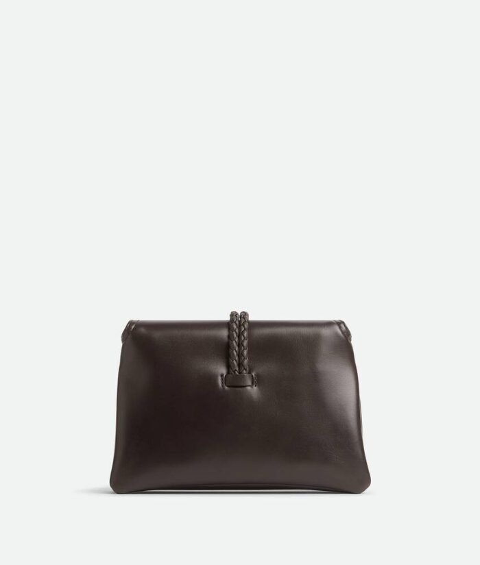 Small cross-body bag in smooth calfskin leather with double flap and fastening system consisting of metal elements and coaxial cord