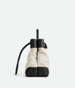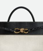 Large top handle bag in calf leather and canvas with sliding cross-body strap