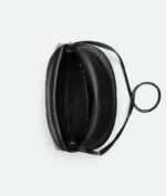 Cross-body bag in smooth calfskin leather with double flap and fastening system consisting of metal elements and coaxial cord