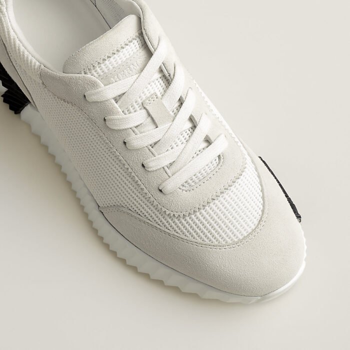 Showing a clean pair of heels, the Bouncing sneaker ventures into urban effervescence. So light that it no longer appears to touch the ground and full of untamed energy, it turns every moment into a high-speed adventure. Thinking big, it features a signature ‘H en biais’ motif in a bold, oversized format.