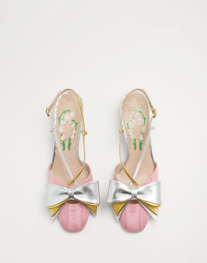 Valentino Garavani Bowow slingback pump in moir?? fabric with bow detail in laminated nappa