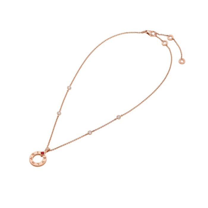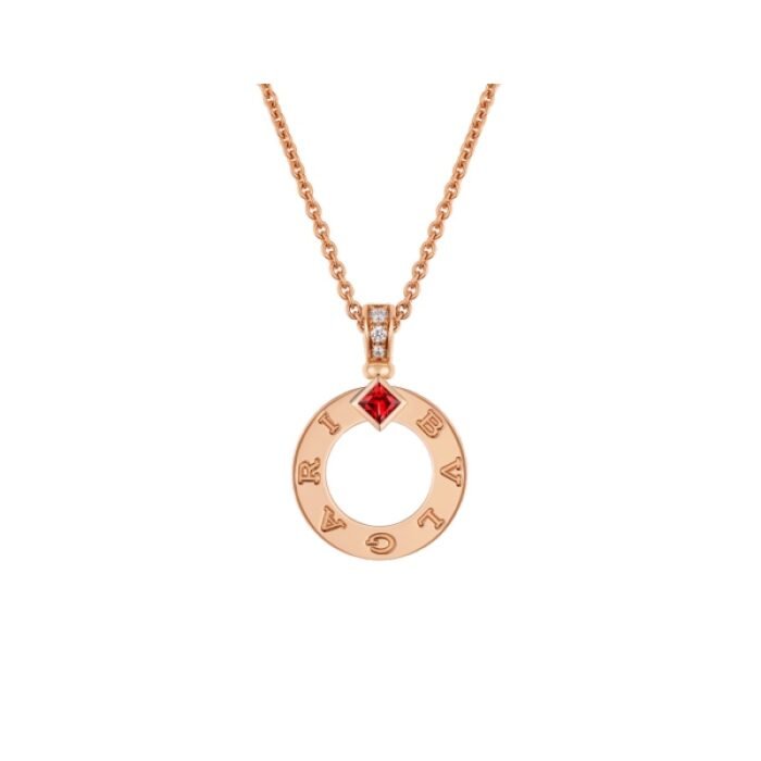 Bvlgari Bvlgari chain and pendant in 18K rose gold, set with rubies.