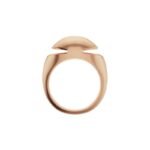The Bvlgari Cabochon ring is made of 18K rose gold. The teardrop-shaped design shows the harmonious combination of volume and shape. Through the tactile experience, gold is shaped into a masterpiece of art with agility and vitality, and the exquisite goldmaking craftsmanship is fully displayed. This jewelry piece draws inspiration from the smooth convex egg-shaped cutting process, using precious metals to set off the pure simplicity of gold. The convex egg-shaped cutting has been the aesthetic symbol of Bvlgari since the 1950s, which fully demonstrates the charm of the gemstone material.