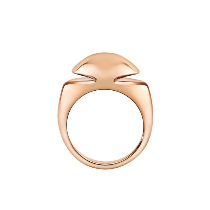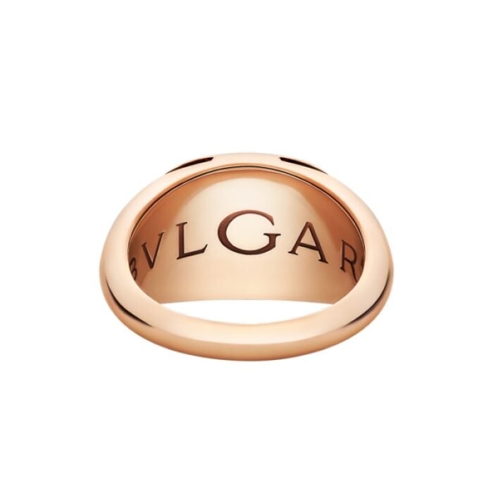 The Bvlgari Cabochon ring is made of 18K rose gold. The teardrop-shaped design shows the harmonious combination of volume and shape. Through the tactile experience, gold is shaped into a masterpiece of art with agility and vitality, and the exquisite goldmaking craftsmanship is fully displayed. This jewelry piece draws inspiration from the smooth convex egg-shaped cutting process, using precious metals to set off the pure simplicity of gold. The convex egg-shaped cutting has been the aesthetic symbol of Bvlgari since the 1950s, which fully demonstrates the charm of the gemstone material.