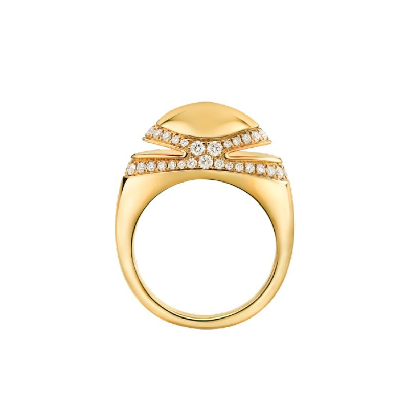 Bvlgari Cabochon series 18K yellow gold ring, decorated with semi-pave diamonds