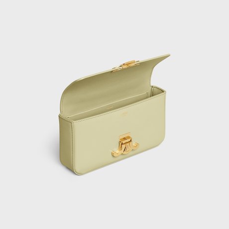 CHAIN SHOULDER BAG CLAUDE IN SHINY CALFSKIN ALMOND GREEN