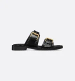New for Cruise 2025, the D-Avenue slide is an urban and elegant creation. Crafted in black openwork Microcannage calfskin, it features two straps embellished with adjustable buckles and the gold-tone Christian Dior Paris signature on the upper strap. Completed by a comfortable padded Microcannage sole, the slide will lend a refined touch to any casual look.