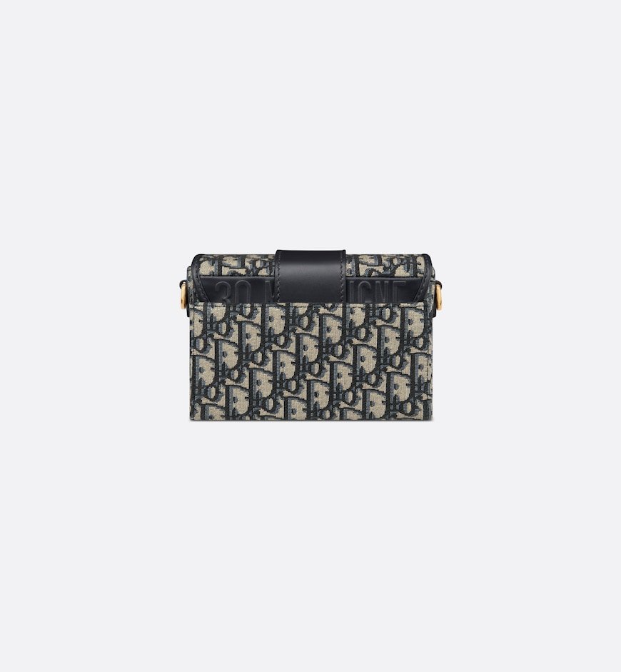 The 30 Montaigne line, inspired by the historic, emblematic address, presents essential pieces that portray the iconic codes of the House. The compact bag is crafted in blue Dior Oblique jacquard for an elegant and modern look. The flap is embellished with an antique gold-finish metal CD clasp, inspired by the seal of a Christian Dior perfume bottle. Refined details such as an embossed 30 Montaigne signature on the back and the military-inspired buckle define this unique design. Featuring an adjustable leather shoulder strap, the 30 Montaigne box bag may be carried by hand, worn over the shoulder or crossbody.