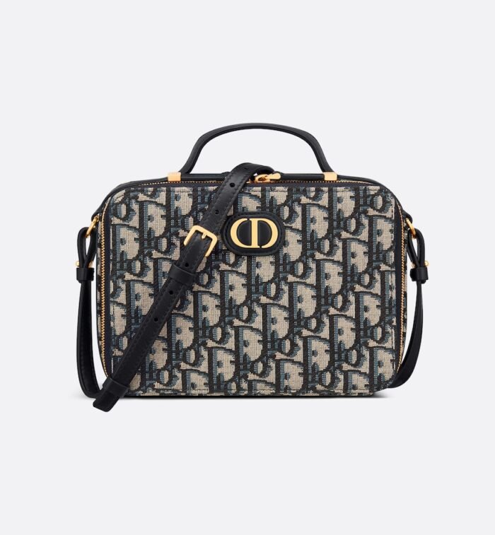 Maria Grazia Chiuri’s 30 Montaigne box bag is a modern creation. Crafted in blue multicolor jacquard, it stands out with a Dior Oblique motif and a spacious compartment, including three card slots, to accommodate all the daily essentials. The removable and adjustable leather strap offers comfortable wear either over the shoulder or crossbody, while the handle allows it to be carried by hand.