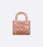 The Lady Dior bag epitomizes the House’s vision of elegance and beauty. Sleek and refined, the timeless style is crafted in Rose des Vents patent calfskin with Cannage stitching, creating the legendary and instantly recognizable quilted texture, while the pale gold-finish metal D.I.O.R. charms further embellish its silhouette. Featuring a removable chain strap, the miniature Lady Dior bag can be carried by hand or