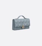 The My Dior mini bag expands the line with an elegant and functional design. Crafted in cloud blue Cannage lambskin, it features a flap enhanced by D.I.O.R. charms on the front. Equipped with compartments and card slots, the functional accessory holds all the essentials and is the ideal day and evening companion. A top handle completed by a removable chain punctuated with resin pearls allows the bag to be carried by hand or worn crossbody.