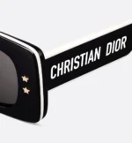 The DiorPacific S1U sunglasses are a modern and bold square design. The black acetate frame is adorned with gold-finish star details on the front, while the temples showcase a tri-layer effect in black and white featuring the Christian Dior signature. Completed by gray lenses, the new essential style will lend a unique touch to any look.
