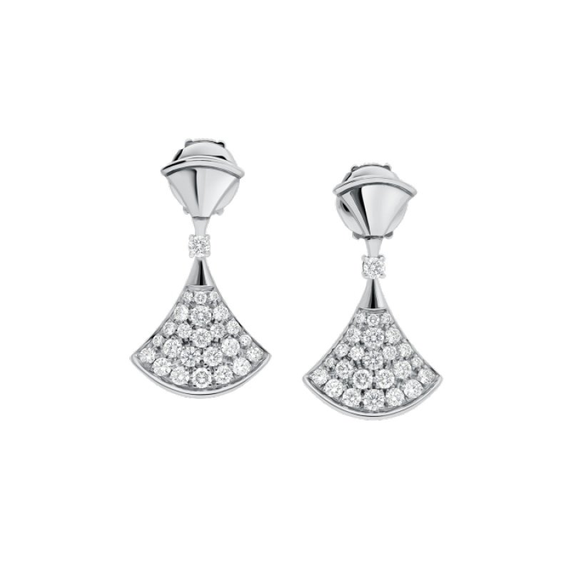 Inspired by feminine elegance and the allure of the Eternal City, the Divas’ Dream earrings pay tribute to the most fascinating women with a unique Roman spirit. Feminine and refined, these earrings capture the beauty of the marble of the Baths of Caracalla and the curves of the fan-shaped mosaics, the true essence of Italian beauty. Divas’ Dream earrings in 18K white gold with pavé diamonds.