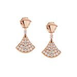 Inspired by feminine elegance and the allure of the Eternal City, the Divas’ Dream earrings pay tribute to the most fascinating women with a unique Roman spirit. Feminine and refined, these earrings capture the beauty of the marble of the Baths of Caracalla and the curves of the fan-shaped mosaics, the true essence of Italian beauty. Divas’ Dream earrings in 18K rose gold with pavé diamonds.
