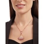 The Divas’ Dream necklace embodies Italian elegance and unleashes feminine power with a mysterious and unforgettable temperament. The charming and exquisite jewelry is decorated with a fan-shaped pattern, inspired by the mosaic decoration of the Baths of Caracalla in Rome, and highlights the historical origins of Bvlgari and the “Eternal City” Rome with modern fashion design and the brilliance of precious gemstones.