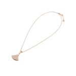 Inspired by feminine elegance and the allure of the Eternal City, the Divas’ Dream necklace pays tribute to the most fascinating women with a unique Roman spirit. Feminine and refined, this necklace captures the beauty of the marble of the Baths of Caracalla and the curves of the fan-shaped mosaics, the true essence of Italian beauty. Divas’ Dream necklace in 18K rose gold with pavé diamonds.