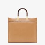 Medium Sunshine Shopper bag made of honey-coloured leather, with FENDI ROMA lettering appliqué in python-look printed elaphe and stiff tortoiseshell-effect plexiglass handles.