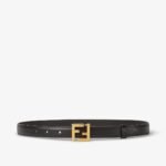 Thin belt with loop and iconic FF stud buckle. Made of black leather. Gold-finish metalware.