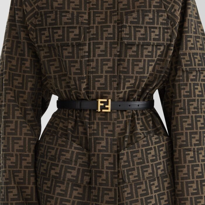 Thin belt with loop and iconic FF stud buckle. Made of black leather. Gold-finish metalware.