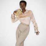 Slim belt with double loop and square buckle. Made of dove gray leather. Decorated with a metal FF logo tag on one of the loops. Gold-colored metal tip. Gold-finish metalware.