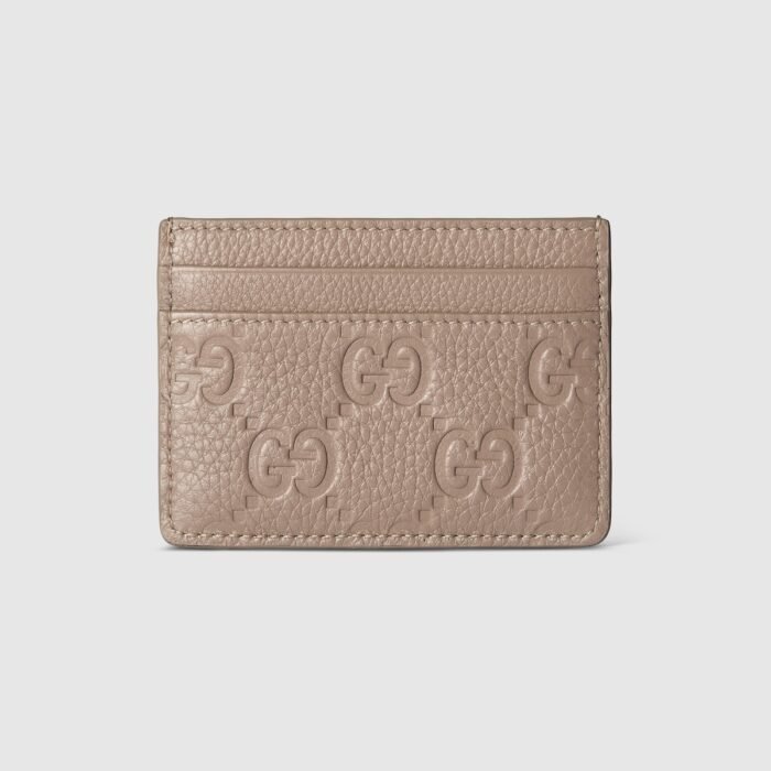 Reinforcing the timelessness of the GG motif, various small accessories spotlight the pattern in a soft-to-touch grainy leather. Bringing contrasting textures to the latest collection, the range is also available in a variety of neutral and pastel tones. This GG Emblem card case appears in taupe GG grainy leather.