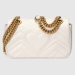 The mini GG Marmont chain shoulder bag has a softly structured shape and an oversized flap closure with Double G hardware. The sliding chain strap can be worn multiple ways, changing between a shoulder and a top handle bag. Made in matelass?? chevron leather with a heart on the back.