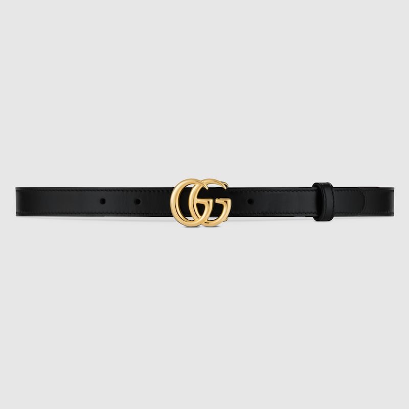 GG Marmont thin leather belt with shiny buckle