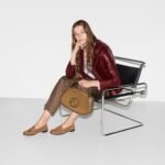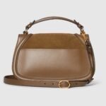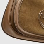 The new Gucci Blondie bag, whose distinctive logo first appeared in the House??s collections in the early 1970s, weaves together past and present in a fusion of nostalgia and modernity. This medium top handle bag is crafted from brown suede, featuring the House’s round symbol in enamel. The style is complete with a leather top handle and detachable, adjustable shoulder strap.