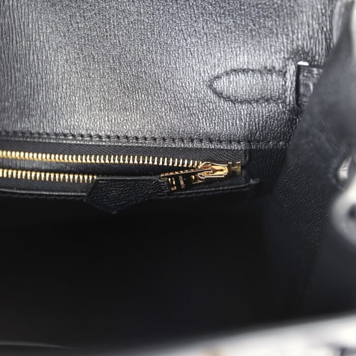 The interior is lined with Black chevre and has one zip pocket with an Hermès engraved zipper pull and an open pocket on the opposite side.