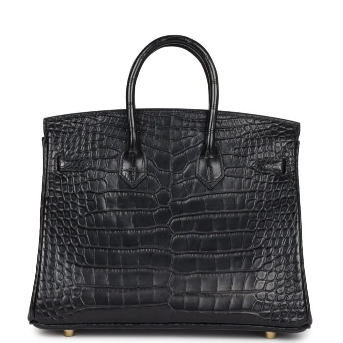 Hermes Birkin 25 Black Matte Alligator Gold Hardware