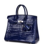 Hermes Birkin 25 Bleu Electric Shiny Niloticus Crocodile Palladium Hardware