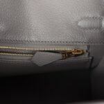 The interior is lined with Gris Meyer chevre and has one zip pocket with an Hermès engraved zipper pull and an open pocket on the opposite side.