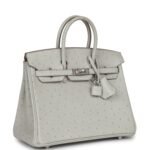 Hermes Birkin 25 Gris Perle Ostrich Palladium Hardware