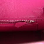 The interior is lined with Rose Sheherazade chevre and has one zip pocket with an Hermès engraved zipper pull and an open pocket on the opposite side.