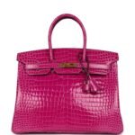 Hermes Birkin 35 Rose Scheherazade Shiny Porosus Crocodile Gold Hardware
