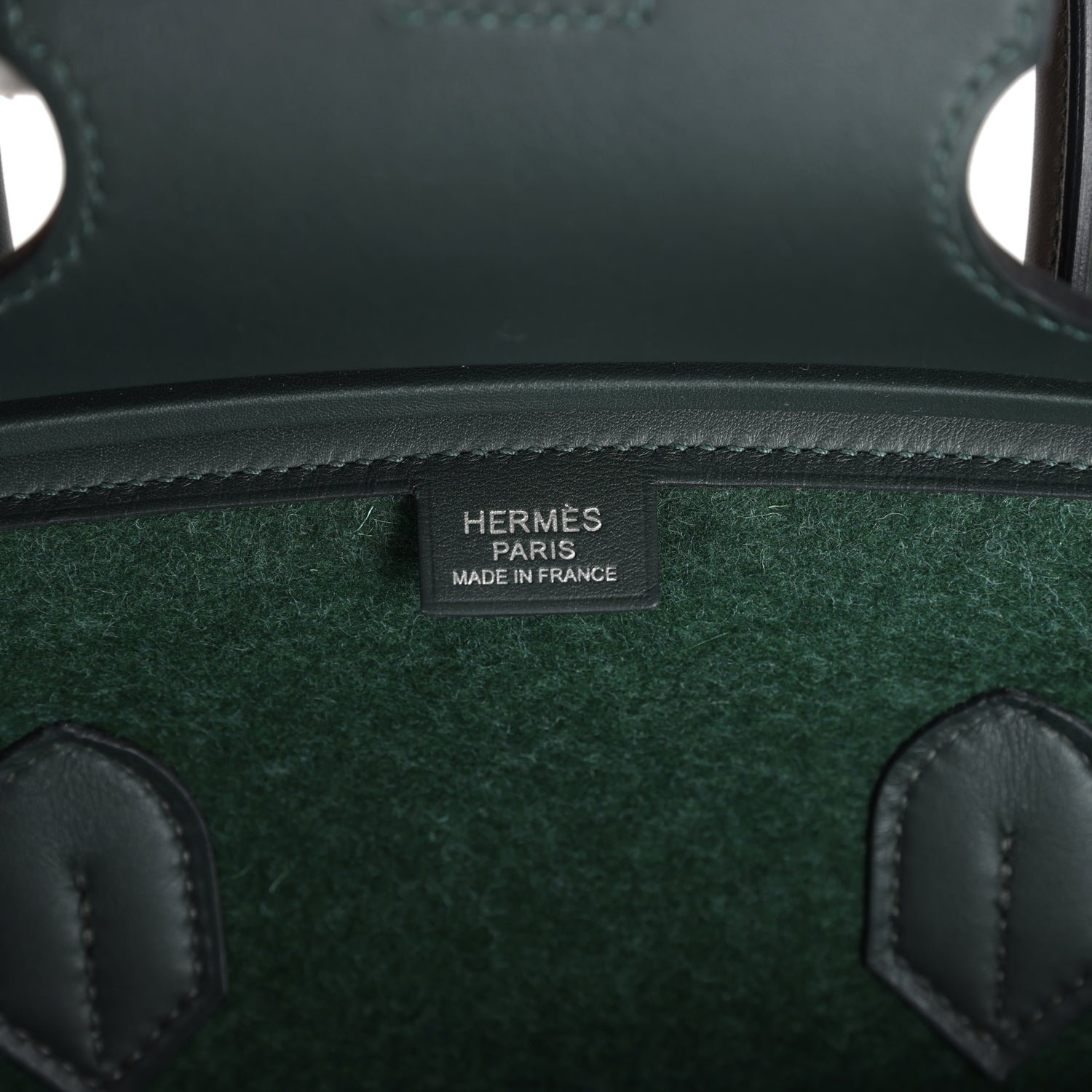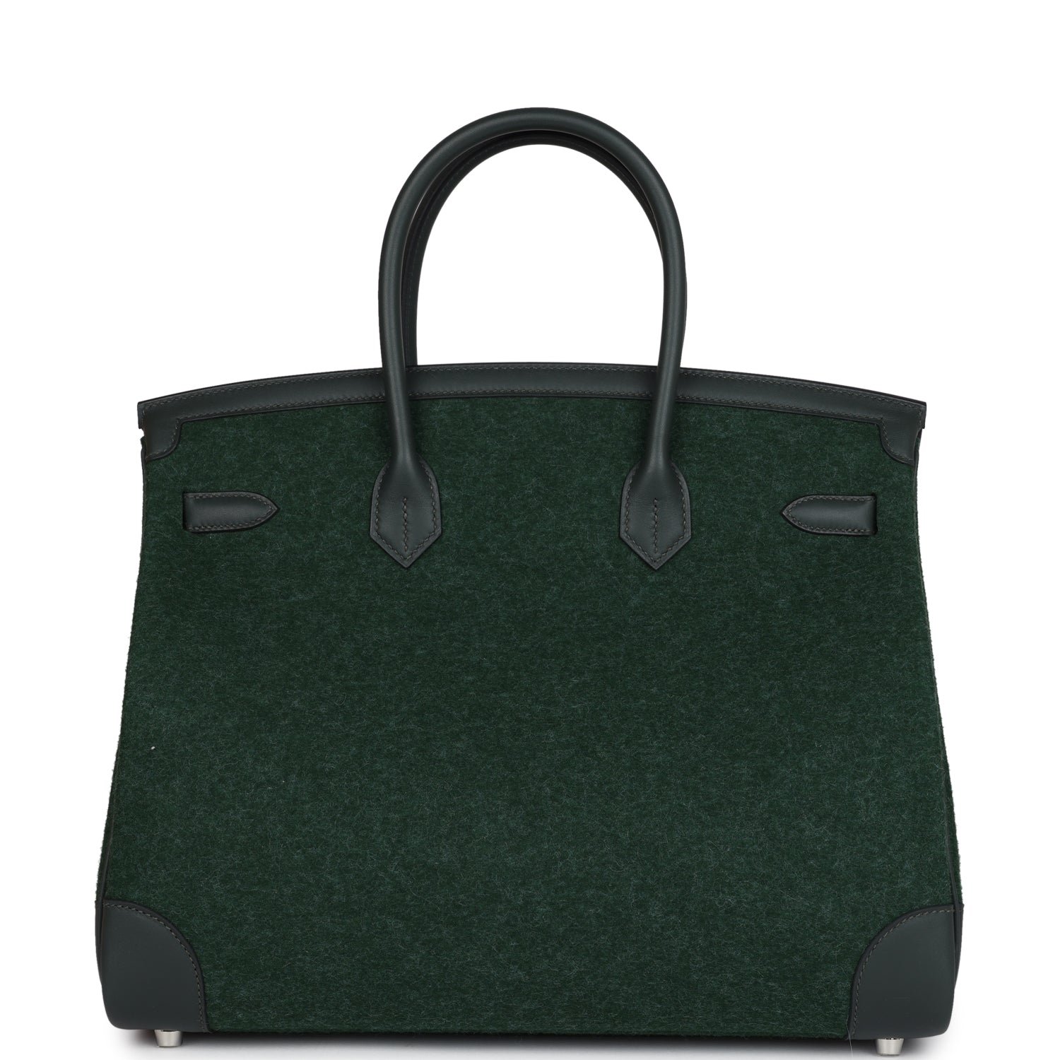 Hermes Birkin 35 Vert Anglais Feutre Wool and Vert Fonce Feutre Swift Palladium Hardware