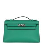 Hermes Kelly Pochette Vert Vertigo Swift Palladium Hardware