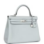 Hermes Kelly Retourne 32 Bleu Pale Clemence Palladium Hardware