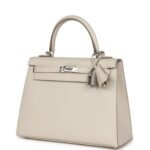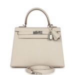 Hermes Kelly Sellier 25 Craie Epsom Palladium Hardware