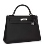Hermes Kelly Sellier 32 Black Epsom Palladium Hardware